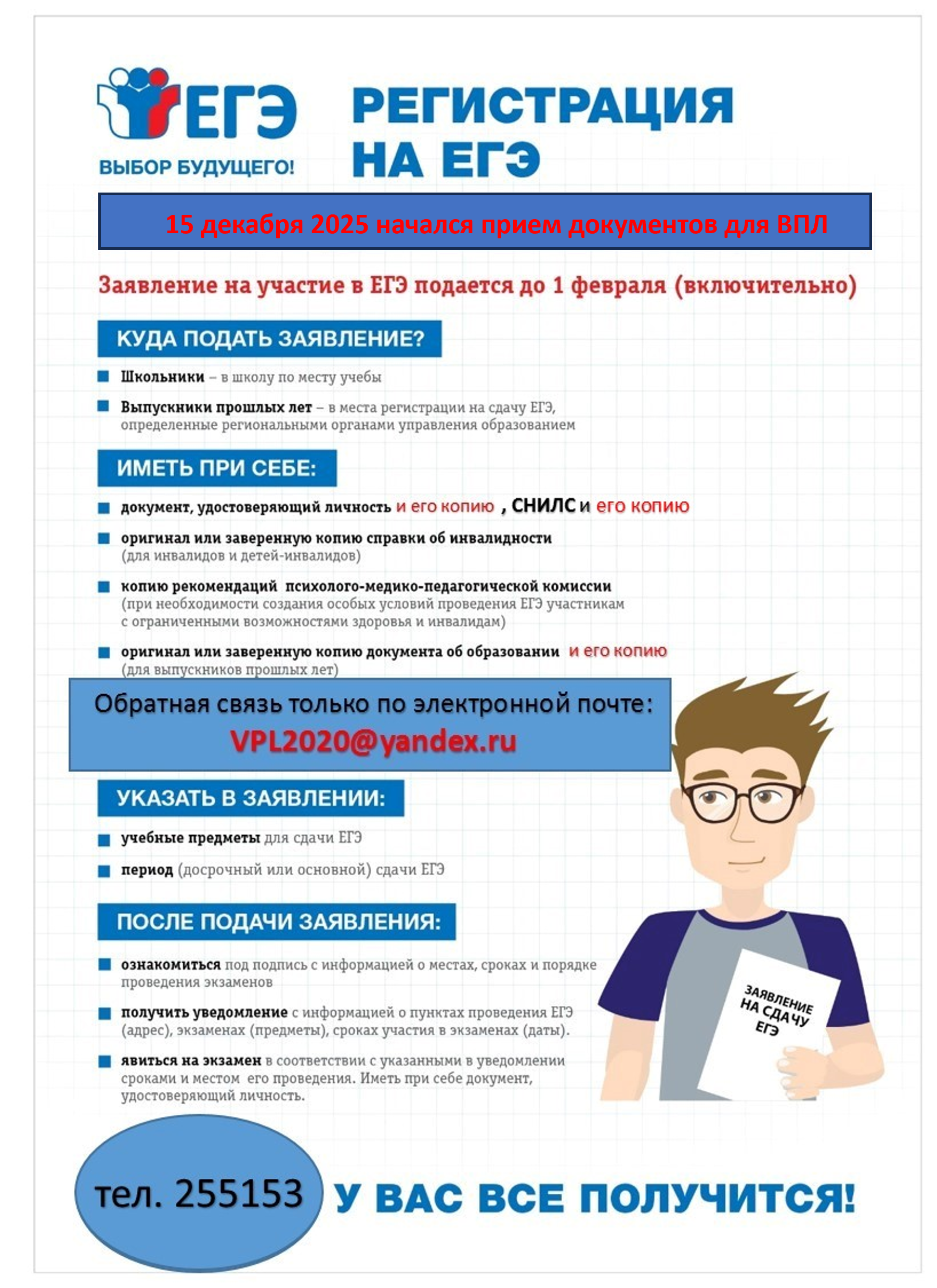 Внимание! Заявление на сдачу ЕГЭ подается ЛИЧНО до 1 февраля 2026 года.